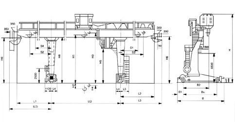 本機(jī)可分為橋架大車運(yùn)行機(jī)構(gòu)、小車、電動(dòng)設(shè)備等多部分構(gòu)成,全部機(jī)構(gòu)均在司機(jī)室內(nèi)操縱并有防雨設(shè)備。